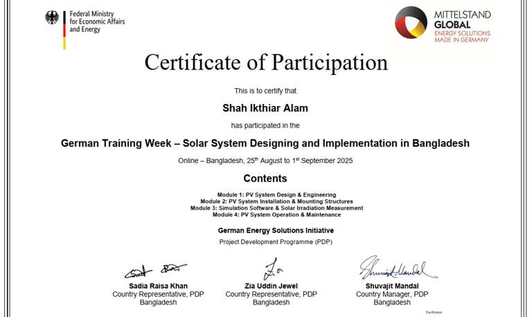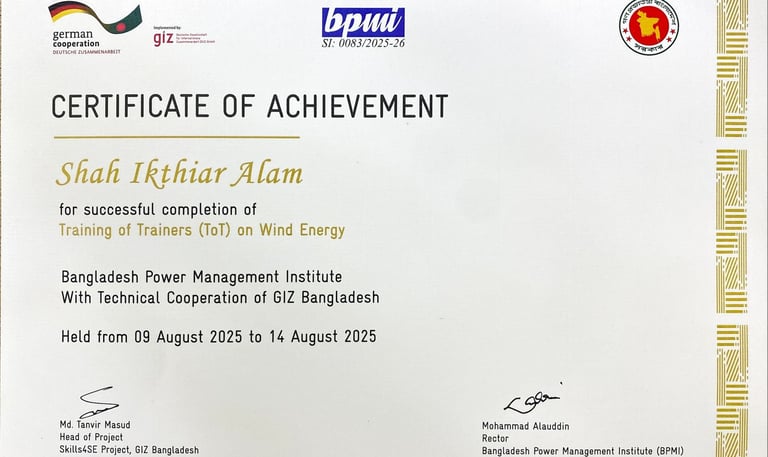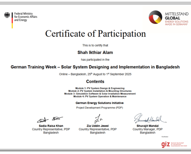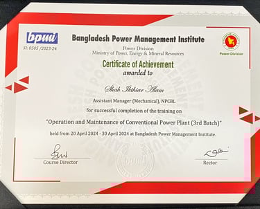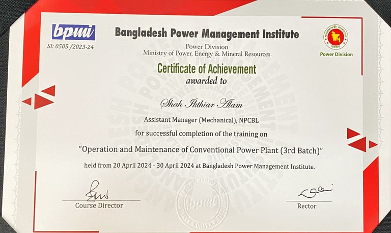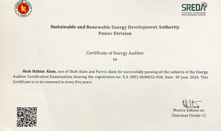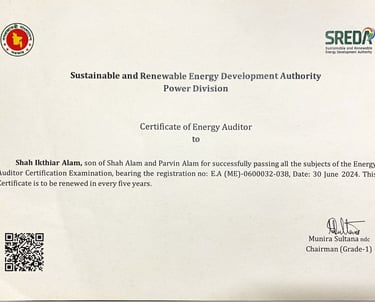 Verified certificates and credentials showcasing key energy efficiency, renewable energy, and power plant engineering expertise.